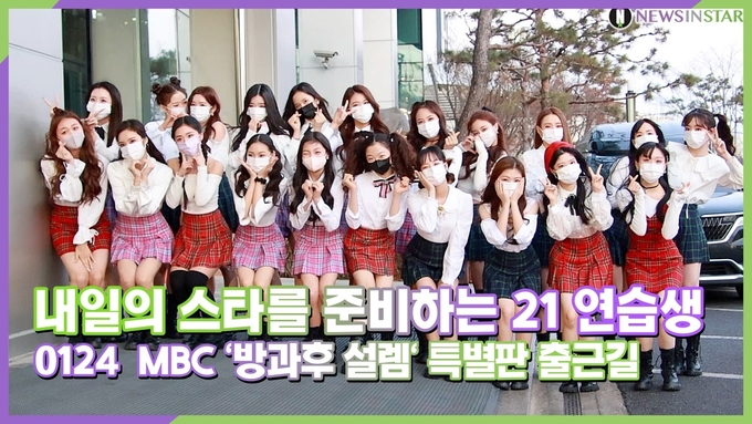 [뉴스인스타 양철수기자] 1월 24일(월) 오전, 서울시 마포구 상암동 MBC에서 진행된 MBC 오디션 프로그램 ‘방과후 설렘’ 특별판 녹화에 참석하기 위해 연습생 김윤서, 김현희, 명형서, 김유연, 이지우, 원지민, 이태림, 오지은, 이미희, 김하리, 홍혜주, 미나미, 최윤정, 김인혜, 박보은, 윤승주, 김수빈, 김선유, 김리원, 윤채원, 이영채가 방송국에 도착해 포즈를 취하고 있다.