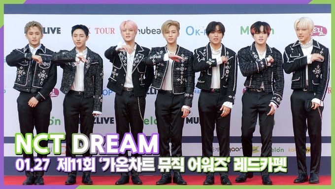 [뉴스인스타 양철수기자] 1월 27일(목) 오후, 서울시 송파구 잠실동 서울종합운동장 잠실실내체육관에서 생방송으로 진행되는 제11회 '가온차트 뮤직 어워즈' 레드카펫 행사에 그룹 NCT DREAM 마크, 런쥔, 제노, 해찬, 재민, 천러, 지성이 참석해 포토타임을 갖고 있다.