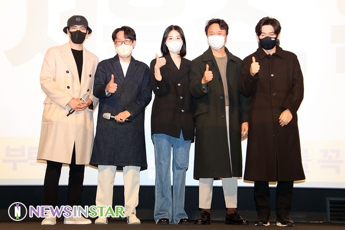[뉴스인스타 양철수기자] 1월 29일(토) 오후, 서울시 용산구 CGV 용산아이파크몰에서 진행되는 영화 '킹메이커' 무대인사에 참석하기 위해 배우 설경구,전배수,서은수,윤세웅,김성오가 무대에서 팬들에게 인사를 하고 있다. 이날 참석 예정이었던 이선균 배우는 밀접 접촉자로 불참
