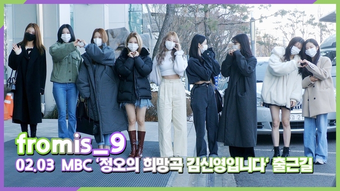 [뉴스인스타 양철수기자] 2월 3일(목) 오후, 서울시 마포구 상암동 MBC본사에서 진행되는 MBC라디오 ‘정오의 희망곡 김신영입니다’ 생방송 출연을 위해 프로미스나인(fromis_9) 이새롬, 송하영, 장규리, 박지원, 노지선, 이채영, 이나경, 백지헌, 이서연이 방송국에 도착해 포토타임을 갖고 있다.