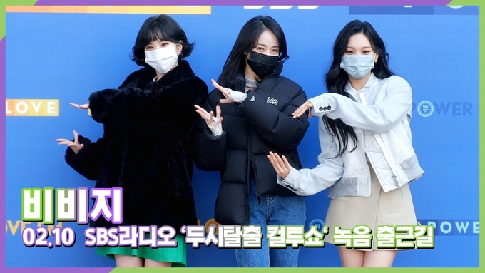 [뉴스인스타 양철수기자] 2월 10일(목) 오후 서울시 양천구 목동 SBS에서 진행되는 SBS 파워FM ‘두시탈출 컬투쇼’ 일요일 방송 녹음을 위해 비비지(VIVIZ) 은하, 신비, 엄지가 방송국에 도착해 포즈를 취하고 있다.