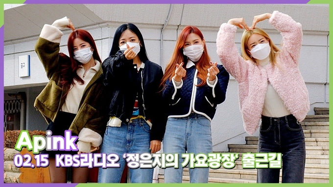 [뉴스인스타 양철수기자] 2월 15일(화) 오후, 서울시 영등포구 여의도 KBS에서 진행되는 KBS 쿨FM ‘정은지의 가요광장’ 생방송 출연을 위해 그룹 에이핑크(Apink) 박초롱, 윤보미, 김남주, 오하영이 방송국에 도착해 포즈를 취하고 있다.