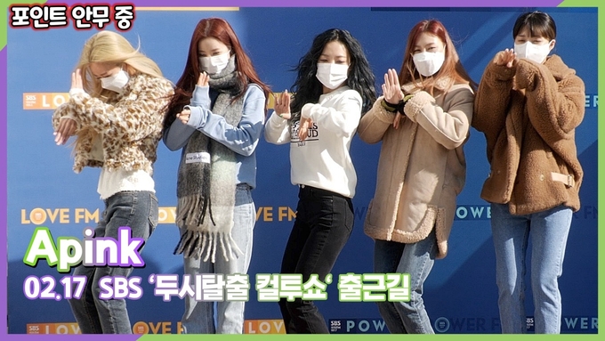 [뉴스인스타 양철수기자] 2월 17일(목) 오후, 서울시 양천구 목동 SBS방송센터에서 진행되는 SBS ‘두시탈출 컬투쇼’ 생방송 출연을 위해 그룹 에이핑크(Apink) 정은지, 박초롱, 윤보미, 김남주, 오하영이 방송국에 도착해 포즈를 취하고 있다.