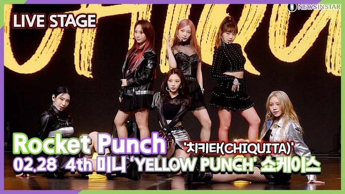 [뉴스인스타 양철수기자] 2월 28일(월) 오후, 서울시 광진구 광장동 예스24 라이브홀에서 진행되는 로켓펀치(Rocket Punch)의 4th 미니앨범 'Yellow Punch' 쇼케이스가 진행돼 로켓펀치 연희,쥬리,수윤,윤경,소희,다현이 참석해 타이틀곡 치키타(Chiquita) 무대를 선보이고 있다.