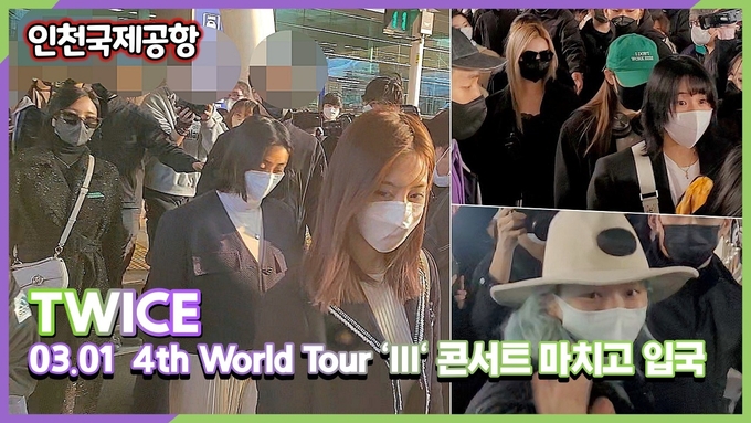 [뉴스인스타 양철수기자] 3월 1일(화) 오후, 인천시 중구 운서동 인천국제공항 제2터미널에서 TWICE(트와이스)가 미국에서 진행한 TWICE, 4th World Tour 'III' 콘서트를 마치고 뉴욕에서 입국하고 있다.