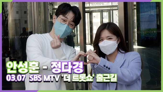 [뉴스인스타 양철수기자] 3월 7일(월) 오후, 서울시 마포구 상암동 SBS프리즘타워에서 진행되는 SBS FiL(MTV) 'The 트롯Show' 녹화를 위해 가수 안성훈, 정다경이 방송국에 도착해 포토타임을 갖고 있다.