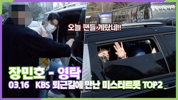 [뉴스인스타 양철수기자] 3월 16일(수) 오후, 서울시 영등포구 여의도 KBS에 미스터트롯 영탁, 장민호가 방송을 마치고 퇴근하고 있다. 영탁은 KBS라디오 '김혜영과 함께' 장민호는 '주접이 풍년' 녹화에 참석했다.