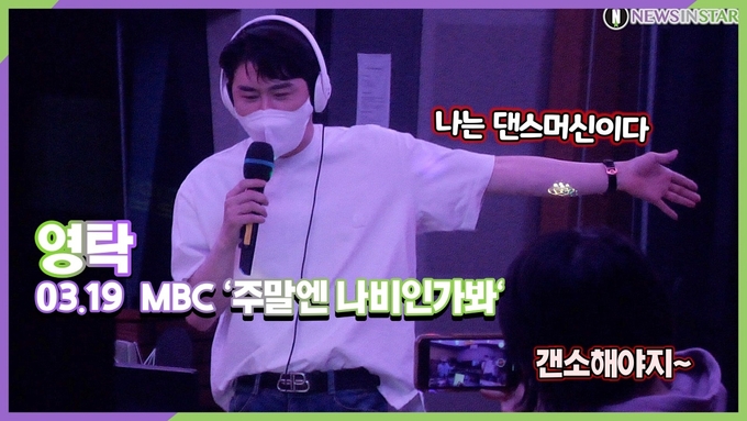 [뉴스인스타 양철수기자]. 3월19일(토) 오후, 서울시 마포구 상암동 MBC에서 생방송으로 진행된 MBC라디오 '주말엔 나비인가봐' 방송 중에 미스터트롯 영탁이 댄스 삼매경에 빠졌다