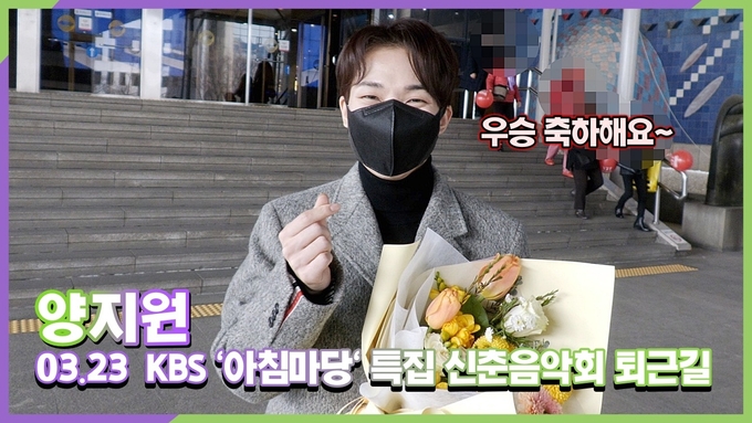 [뉴스인스타 양철수기자] 3월 23일(수) 오전, 서울시 영등포구 여의도 KBS에서 진행된 KBS 1TV ‘아침마당' 특집 신년음악회 출연을 마치고 원조 트로트 신동 양지원이 방송국을 나서며 포즈를 취하고 있다.