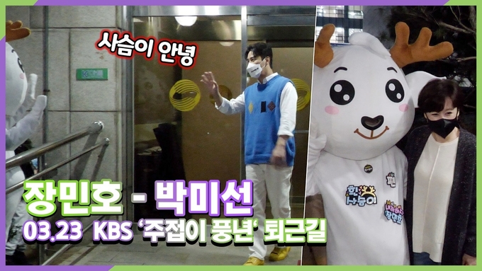[뉴스인스타 양철수기자] 3월 23일(수) 오후, 서울시 영등포구 여의도 KBS에서 진행된 KBS 예능 '주접이 풍년' 출연을 마치고 미스터트롯 장민호, 박미선이 방송국을 나서고 있다.