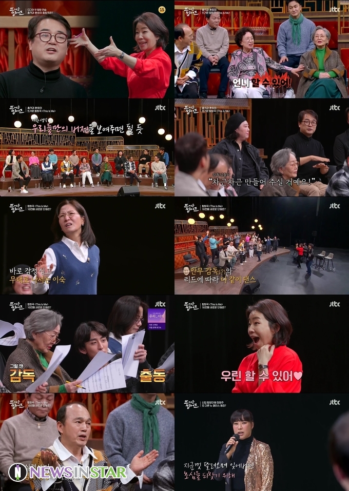 인생이 담긴 자기소개 무대로 큰 감동을 선물했던 ‘뜨씽즈’. ‘디스 이즈 미’는 합창이라는 쉽지 않은 도전에 용기를 낸 시니어벤져스의 이야기를 녹일 수 있는 곡이었다. 어려운 곡에 주저하는 맏언니 김영옥에게 용기를 불어넣는 나문희, ‘위대한 쇼맨’ 작품 속 주인공들처럼 춤까지 출 생각이라는 열정의 이병준, 우리들만의 ‘디스 이즈 미’를 보여주면 된다고 걱정하는 단원들을 다독이는 이서환 등 걱정과 설렘이 교차하는 합창 연습이 시작됐다.