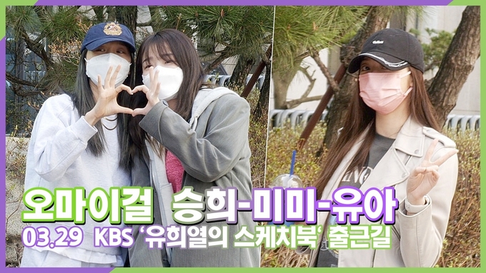 [뉴스인스타 양철수기자] 3월 29일(화) 오후, 서울시 영등포구 여의도 KBS 신관 공개홀에서 진행되는 KBS 2TV '유희열의 스케치북' 녹화를 위해 그룹 오마이걸(Oh My Girl) 승희, 미미, 유아가 방송국에 도착해 포즈를 취하고 있다.