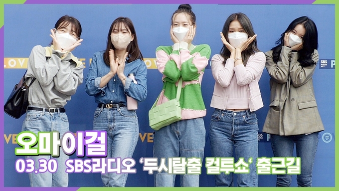 [뉴스인스타 양철수기자] 3월 30일(수) 오후, 서울시 양천구 목동 SBS에서 생방송으로 진행되는 SBS 파워FM ‘두시탈출 컬투쇼’ 출연을 위해 그룹 오마이걸(OH MY GIRL, OMG) 효정, 미미, 승희, 유빈, 아린이 방송국에 도착해 포즈를 취하고 있다.