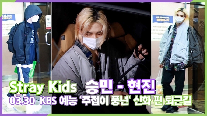 [뉴스인스타 양철수기자] 3월 30일(수) 오후, 서울시 영등포구 여의도 KBS에서 진행된 KBS 예능 '주접이 풍년' 출연을 마치고 그룹 스트레이 키즈(Stray Kids) 현진, 승민이 방송국을 나서고 있다.