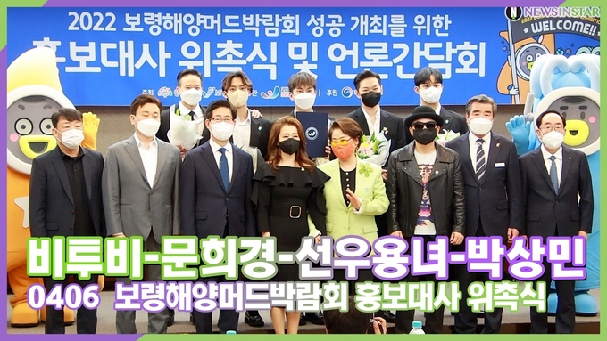 [뉴스인스타 양철수기자] 4월 6일(수) 오전, 서울시 중구 태평로 한국프레스센터 기자회견장에서 진행된 2022 보령해양머드박람회 홍보대사 위촉식 및 언론간담회가 열려 공동조직위원장과 홍보대사 비투비, 선우용녀, 문희경, 박상민이 참석해 행사를 진행했다.