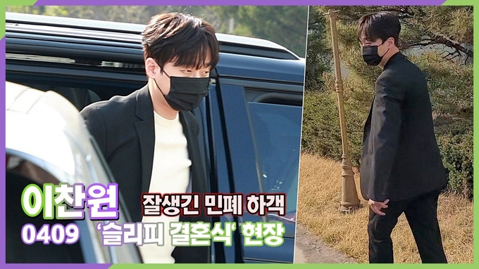 [뉴스인스타 양철수기자] 4월 9일(토) 오후, 서울시 중구 장충동 한 결혼식장에서 열린 가수 '슬리피' 결혼식에 미스터트롯 이찬원이 하객으로 도착하고 있다.