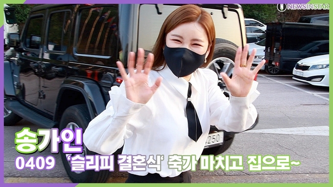 [뉴스인스타 양철수기자] 4월 9일(토) 오후, 서울시 중구 장충동 한 결혼식장에서 열린 가수 '슬리피' 결혼식에서 미스트롯 송가인이 축가를 마치고 귀가하고 있다.