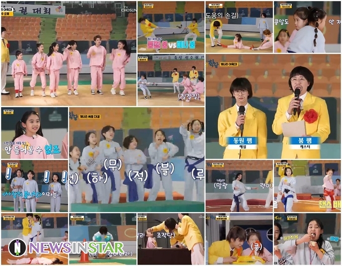 먼저 정동원은 붐과 똑같은 가발을 쓰고 수염을 그린 일일 캐스터 정동‘붐’으로 분해 폭소를 자아냈다. 이어 ‘블루팀’ 류영채-김태연-임지민-서지유-오아린-오한결과 ‘핑크팀’ 김다현-안율-임서원-이경훈-김지율-김유하로 구성된 선수단이 입장, 뜨거운 신경전을 벌였다. 또한 오한결은 요즘 대세 노래인 ‘카운팅스타’로 폭풍 랩실력을 드러냈고, 김다현이 ‘멋진 인생’을 열창하며 현장을 더욱 뜨거운 열기로 휘감았다.