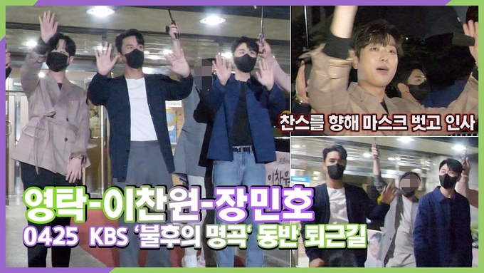 [뉴스인스타 양철수기자] 4월25일(월) 오전, 서울시 영등포구 여의도 KBS 공개홀에서 진행된 KBS 예능 '불후의 명곡' 어버이날 특집 3대 천왕 녹화를 마치고 미스터트롯 영탁, 이찬원, 장민호가 방송국을 나서고 있다.