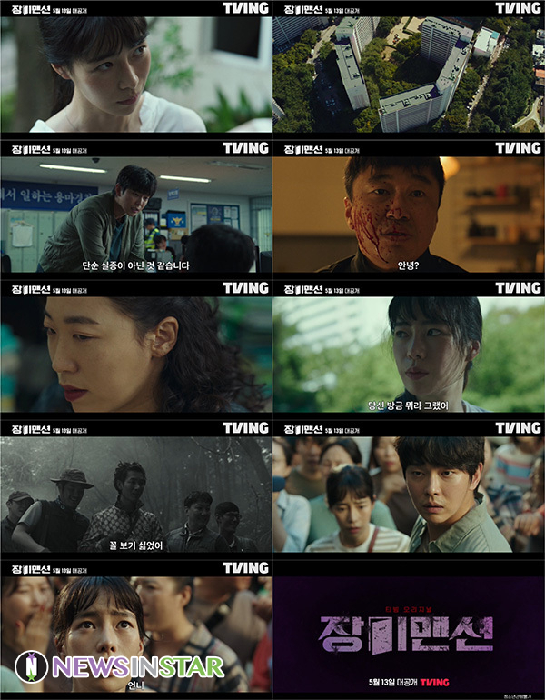 오는 5월 13일(금) 첫 공개되는 티빙 오리지널 시리즈 <장미맨션>(연출 창감독, 극본 유갑열, 제공 TVING, 제작 SLL, 공동제작 비에이엔터테인먼트·필름몬스터)이 26일, 극강의 서스펜스가 ‘숨멎’ 긴장감을 자아내는 메인 예고 영상을 공개했다. 사라진 언니, 어딘가 수상한 이웃들의 면면이 소름을 유발하며 미스터리를 고조시킨다.