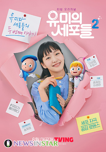 오는 6월 공개되는 티빙 오리지널 시리즈 <유미의 세포들 시즌2>(연출 이상엽·주상규, 크리에이터 송재정, 극본 송재정·김경란, 제공 티빙, 제작 스튜디오드래곤·메리카우·스튜디오N)가 26일, 유미(김고은 분)와 세포들의 핑크빛 귀환을 알리는 티저 포스터를 공개했다. 평범해서 더 특별한 유미의 일상과 함께 세포 마을에 펼쳐질 새로운 이야기가 기대감을 고조시킨다.