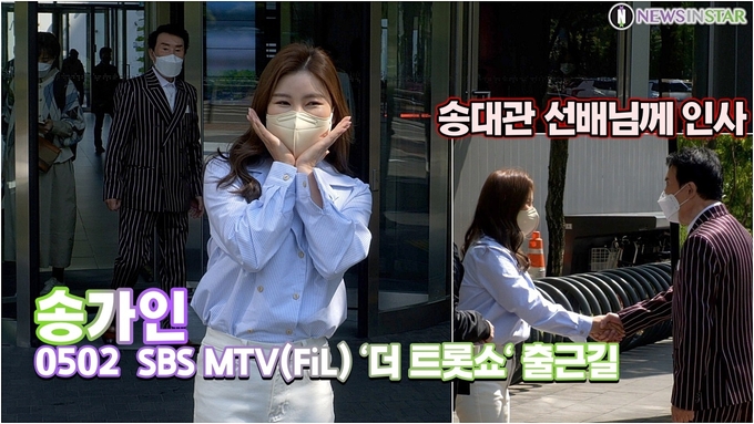 [뉴스인스타 양철수기자] 5월 2일(월) 오전, 서울시 마포구 상암동 SBS프리즘타워에서 진행되는 SBS FiL(MTV) 'The 트롯Show' 녹화를 위해 송가인이 방송국에 도착하고 있다.