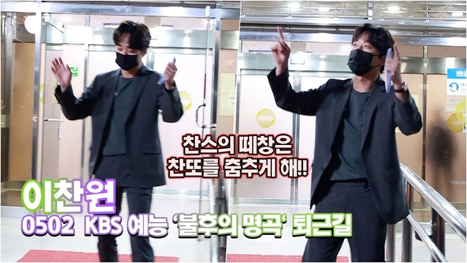 [뉴스인스타 양철수기자] 5월 2일(월) 오후, 서울시 영등포구 여의도 KBS 공개홀에서 진행된 KBS 2TV '불후의 명곡' 녹화를 마치고 MC 이찬원이 방송국을 나서며 열응하는 찬스들에게 흥겨운 댄스를 선보이고 있다.