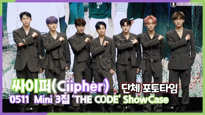 [뉴스인스타 양철수기자] 5월 11일(수) 오후, 서울시 중구 장충동 크레스트72에서 진행되는 그룹 싸이퍼(Ciipher) 미니 3집 'The CODE' 발매 기념 쇼케이스가 열려 싸이퍼 현빈, 탄, 휘, 케이타, 태그, 도환, 원이 참석해 포토타임을 갖고 있다.