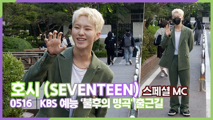 [뉴스인스타 양철수기자] 5월 16일(월) 오후, 서울시 영등포구 여의도 KBS 신관 공개홀에서 진행되는 KBS 예능 ‘불후의 명곡' 녹화에 참석하기 위해 스페셜MC 그룹 세븐틴 호시가 방송국에 도착해 포토타임을 갖고 있다.