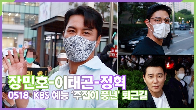 [뉴스인스타 양철수기자] 5월 18일(수) 오후, 서울시 영등포구 여의도 KBS에서 진행된 KBS 예능 '주접이 풍년' 출연을 마치고 MC 장민호, 이태곤, 캐스터 정혁이 방송국을 나서고 있다.