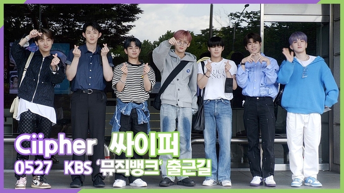 [뉴스인스타 양철수기자] 5월 27일(금) 오후, 서울시 영등포구 여의도 KBS 별관 공개홀에서 진행되는 KBS 2TV ‘MUSICBANK’ 출연을 위해 그룹 싸이퍼(Ciipher) 현빈, 탄, 휘, 케이타, 태그, 도환, 원이 방송국에 도착해 포즈를 취하고 있다