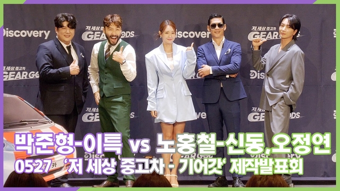 [뉴스인스타 양철수기자] 5월27일(금) 오후, 서울시 중구 앰버서더 서울 풀만호텔에서 진행된 디스커버리 채널 코리아 신규 오리지널 예능 '저 세상 중고차 - 기어갓(GEAR GODS)' 제작발표회가 열려 박준형-이특 vs 노홍철-신동과 오정연 아나운서, 하정석PD가 참석해 포토타임을 갖고 있다.