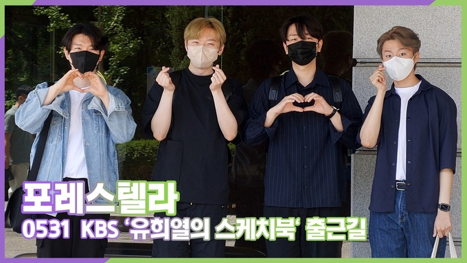 [뉴스인스타 양철수기자] 5월 31일(화) 오후, 서울시 영등포구 여의도 KBS 별관 공개홀에서 진행되는 KBS '유희열의 스케치북' 녹화에 참석하기 위해 크로스오버 그룹 포레스텔라 강형호, 고우림, 배두훈, 조민규가 방송국에 도착하고 있다.