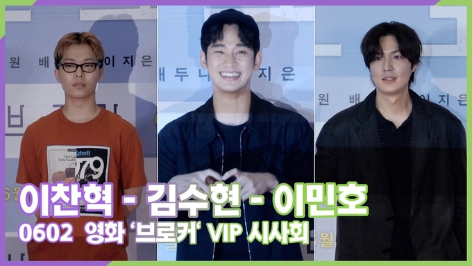 [뉴스인스타 양철수기자] 6월2일(목) 오후, 서울시 용산구 CGV 용산아이파크몰에서 진행된 영화 ’브로커’의 VIP시사회에 이찬혁(악동뮤지션), 김수현, 이민호가 참석해 포토타임에 포즈를 취하고 있다.