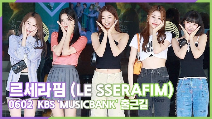 [뉴스인스타 양철수기자] 6월3일(금) 오후, 서울시 영등포구 여의도 KBS별관에서 생방송으로 진행되는 KBS '뮤직뱅크' 출연을 위해 그룹 르세라핌(LE SSERAFIM) 이 방송국에 도착해 포즈를 취하고 있다.