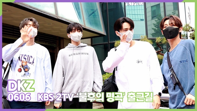 [뉴스인스타 양철수기자] 6월6일(월) 오전, 서울시 영등포구 여의도 KBS 신관 공개홀에서 진행되는 KBS 예능 '불후의 명곡' 녹화를 위해 그룹 그룹 DKZ 경윤, 문익, 재찬, 종형, 세현, 민규, 기석이 방송국에 도착해 포즈를 취하고 있다.