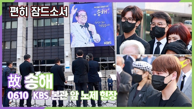 [뉴스인스타 양철수기자] 6월 10일(금) 오전, 서울시 영등포구 여의도 KBS 본관앞에서 국민MC 故 송해님의 추모 노제가 열려 KBS 임직원과 방송인들이 참석해 마지막 가는 길에 애도를 표했다.