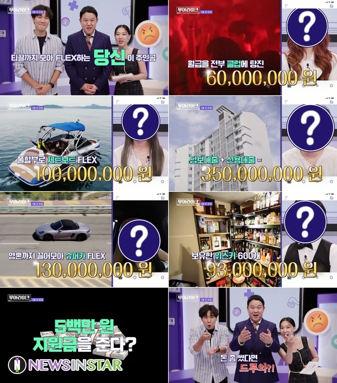 나를 위한 플렉스로 자발적 푸어가 됐다는 푸어맨들의 남다른 소비생활이 ‘좋아요’를 부르는 행복한 지출인지 아니면 멈춰야할 과소비인지 냉정한 판단을 위해 ‘돈’ 이야기에 누구보다 솔직한 촌철살인의 대명사 김구라를 비롯해 이지혜, 도경완, 서태훈, 엄지윤이 MC로 활약할 예정이다.