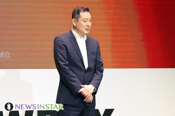 [뉴스인스타 양철수기자] 6월15일(수) 오전, 서울시 용산구 서울드래곤시티 그랜드 볼룸 백두에서 쇼박스(SHOWBOX)의 새로운 기업 비전과 전략을 공개하는 미디어데이 행사가 열려 김도수 쇼박스 대표가 참석해 SHOWBOX 비전 및 라인업 프레젠테이션을 하고 있다.