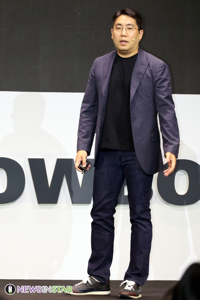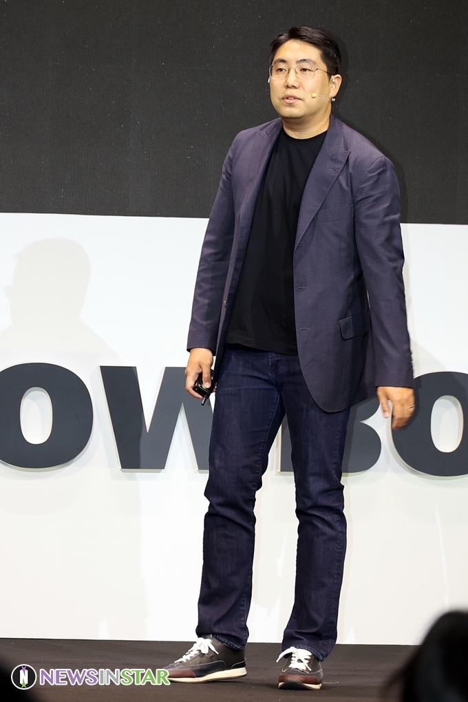 [뉴스인스타 양철수기자] 6월15일(수) 오전, 서울시 용산구 서울드래곤시티 그랜드 볼룸 백두에서 쇼박스(SHOWBOX)의 새로운 기업 비전과 전략을 공개하는 미디어데이 행사가 열려 MCG(Maum Capital Group) 구본웅 의장이 비전 설명을 하고 있다.