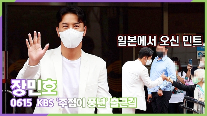[뉴스인스타 양철수기자] 6월 15일(수) 오후, 서울시 영등포구 여의도 KBS 신관 공개홀에서 진행되는 KBS 예능 '주접이 풍년' 녹화를 위해 미스터트롯 장민호가 방송국에 도착해 팬들에게 인사를 하고 있다.