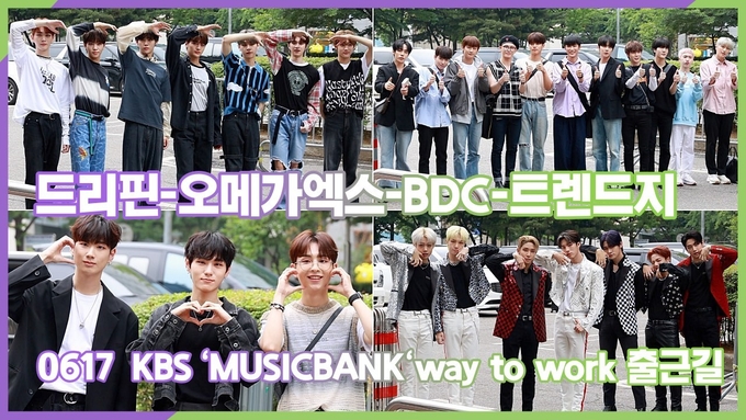[케이팝인스타 양철수기자] 6월17일(금) 오후, 서울시 영등포구 여의도 KBS 신관에서 생방송으로 진행되는 KBS '뮤직뱅크' 출연을 위해 그룹 트렌드지, 오메가엑스, 드리핀, BDC가 방송국에 도착해 포즈를 취하고 있다.