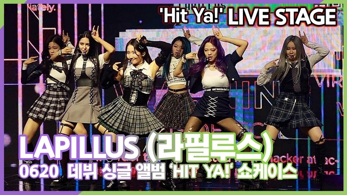 [케이팝인스타 양철수기자] 6월 20일(월) 오전, 서울시 마포구 서교동 신한pLay 스퀘어에서 진행된 그룹 LAPILLUS(라필루스) 데뷔 디지털 싱글 'HIT YA!' 쇼케이가 열려 샤나, 하은, 서원, 샨티, 유에, 베시가 타이틀곡 무대를 선보이고 있다.