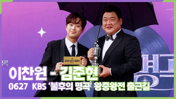 [뉴스인스타 양철수기자] 6월 27일(월) 오전, 인천시 남동구 수산동 인천 남동체육관에서 진행되는 KBS 예능 ‘불후의 명곡' 2022 상반기 왕중왕전 녹화를 위해 MC 이찬원, 김준현이 도착해 포즈를 취하고 있다.