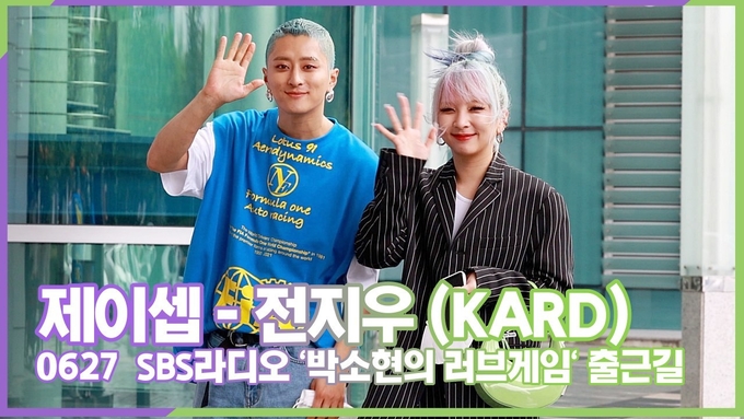 [케이팝인스타 양철수기자] 6월 27일(월) 오후, 서울시 양천구 목동 SBS 방송센터에서 진행되는 SBS 파워FM ‘박소현의 러브게임’ 녹음을 위해 그룹 KARD 제이셉, 전지우가 방송국에 도착해 포즈를 취하고 있다.