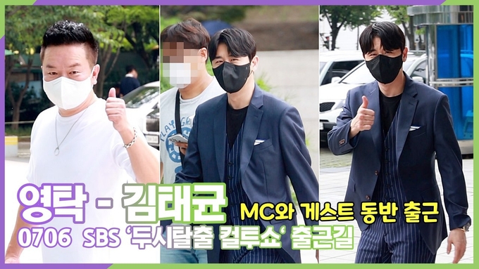 [뉴스인스타 양철수기자] 7월 6일(수) 오후, 서울시 양천구 목동 SBS방송센터에서 진행된 SBS 파워FM '두시탈출 컬투쇼' 생방송 출연을 위해 미스터트롯 영탁, 김태균이 방송국에 도착해 포즈를 취하고 있다.