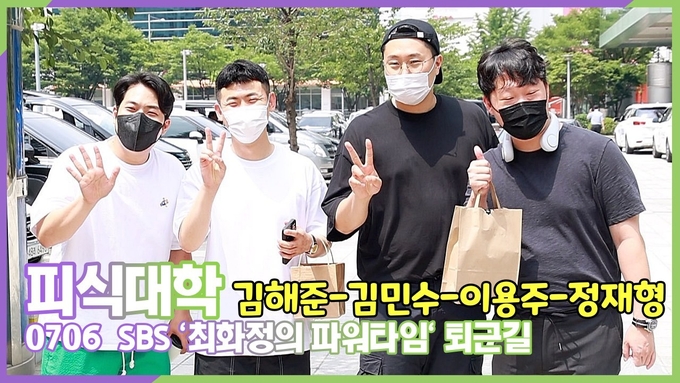 [뉴스인스타 양철수기자] 7월 6일(금) 오후, 서울 양천구 목동 SBS 방송센터에서 진행된 SBS라디오 '최화정의 파워타임’ 출연을 마치고 개그 그룹 피식대학 김해준, 김민수, 이용주, 정재형이 방송국을 나서며 포즈를 취하고 있다.