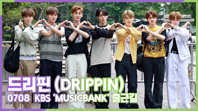 [케이팝인스타 양철수기자] 7월 8일(금) 오후, 서울시 영등포구 여의도 KBS 신관 공개홀에서 진행되는 KBS ‘뮤직뱅크’ 생방송 출연을 위해 그룹 드리핀 차준호, 황윤성, 김동윤, 이협, 주창욱, 알렉스, 김민서가 방송국에 도착해 포즈를 취하고 있다.