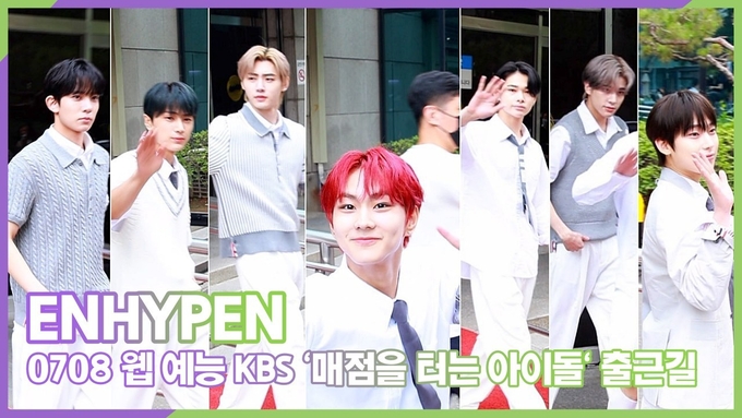 [뉴스인스타 양철수기자] 7월 8일(금) 오후, 서울시 영등포구 여의도 KBS 누리동에서 진행되는 KBS 웹 예능 '매점을 터는 아이돌' 녹화를 위해 ENHYPEN(엔하이픈) 정원, 희승, 제이, 제이크, 성훈, 선우, 니키가 스튜디오에 도착하고 있다.