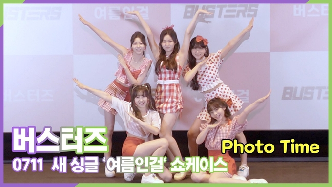 [케이팝인스타 양철수기자] 7월11일(월) 오후, 서울시 영동포구 CGV 여의도 4관에서 그룹 버스터즈 지은, 타카라, 민지, 세이라, 윤지의 새 싱글앨범 ‘여름인걸’ 발매기념 쇼케이스가 진행돼 포토타임을 갖고 있다.